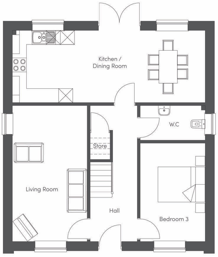 Enjoy an open-plan kitchen and dining space ideal for entertaining, alongside a separate lounge and convenient downstairs WC. A further flexible use room is on the ground floor - a bedroom, office / study or large dining room. Upstairs, two well-sized bedrooms - including a spacious master with en suite - provide ample room to grow.